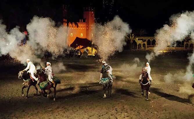 - Spectacle Fantasia : Danseuses orientales, acrobates, musiciens et spectacle équestre impressionnant.